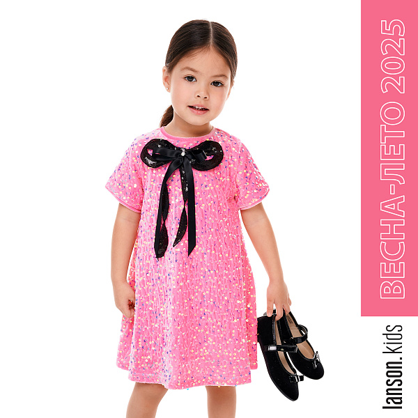 Платье Lanson Kids с разноцветными пайетками и бантом розовое