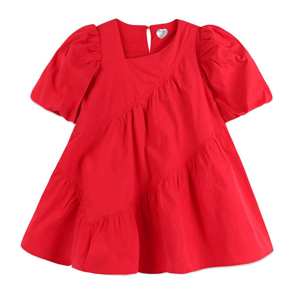 Нарядное платье с короткими пышными рукавами удачно дополнит гардероб любой девочки, будет уместно на прогулке или важном мероприятии. Изделие отличается оригинальным кроем. Асимметричный вырез горловины органично дополняет ярусы, расположенные по нестандартной схеме. Свободный силуэт не сковывает движения, гарантирует комфортную посадку.