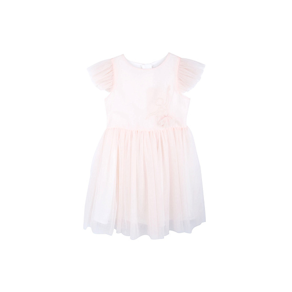 Нежное нарядное платье для девочек в балетном стиле – классическая модель с пышной юбкой и объемными полупрозрачными рукавами. Сзади есть ленты, которые можно завязать на бант и отрегулировать объем талии. В качестве декоративного элемента спереди на поясе вышиты очертания балерины и пришита ее объемная юбка-пачка.