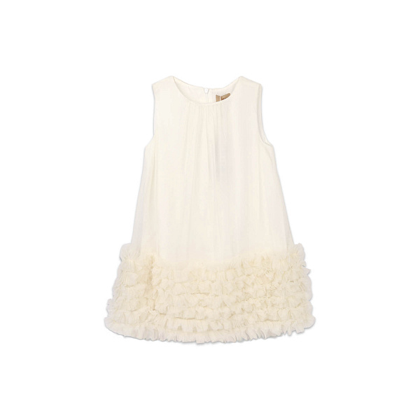 Воздушное платье с миниатюрной сумкой будет одобрено любой девочкой дошкольного возраста. Стильная модель имеет прямой крой, декорирована пышными оборками по нижнему краю. Аналогичный декор можно увидеть и на сумочке. Наряд не сковывает движения, не будет отвлекать ребенка от активных игр и танцев. Он подчеркнет нежный образ юной модницы, позволит ей почувствовать себя настоящей принцессой.