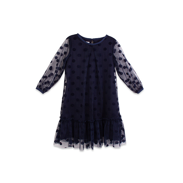 Платье нарядное принт круги с прозрачными рукавами темно-синее