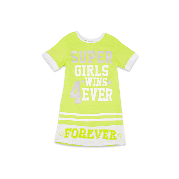 Трикотажное платье в спортивном стиле понравится девочкам с высоким уровнем активности. Такое платье зрительно делает фигуру малышей более подтянутой и грациозной. Платье сшито из 100% хлопкового трикотажного полотна, которое чудесно держит форму и не садится при стирке. Яркий салатовый оттенок органично впишется в летний гардероб малышки. Спортивное платье будет чудесно смотреться с кроссовками или сандалетами. Хлопок помогает защитить чувствительную детскую кожу от воздействия жары, раздражения, пота. Платье подойдет детям дошкольного возраста.