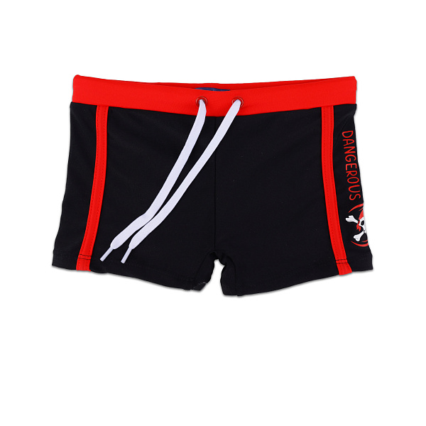 Яркие плавки-боксеры Lanson kids сочных черного и красного цветов понравятся каждому мальчишке. Эластичная ткань не собирается в складки и легко тянется, поэтому плавки чудесно садятся на фигуру любого типа. Боксеры не впиваются в кожу и не стесняют движений в процессе носки. Контрастные красные полосы на поясе и боках добавляют яркости и уверенности в образ. А шнурки позволяют регулировать плавки по полноте. Завершает образ пиратская нашивка в надписью "Очень опасен".