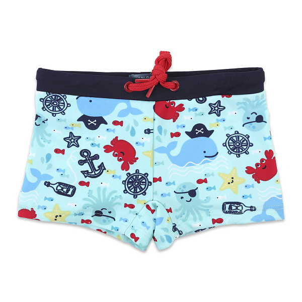 Веселые купальные плавки для мальчиков. Модель с ярким дизайном в виде забавных морских обитателей. Выполнена в виде облегающих шортиков. На поясе вшита мягкая резинка и ремешок в виде шнурка, позволяющий скорректировать посадку. Изделие эластичное, оно мягко обхватывает тело, не пережимая его.