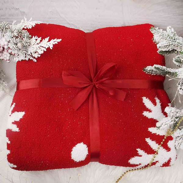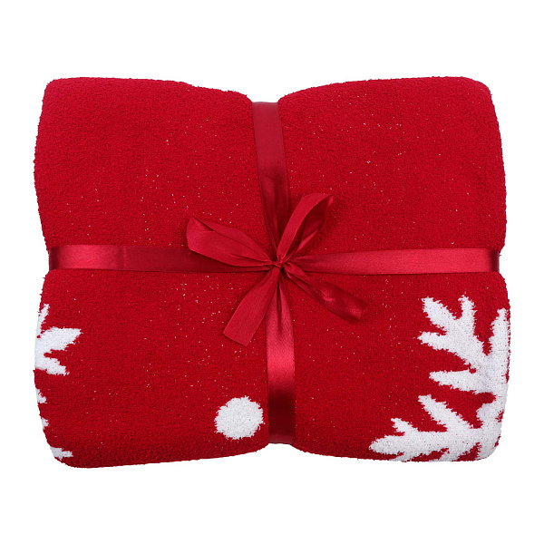 Плед Lanson goods новогодний с белыми снежинками красный 200х150см