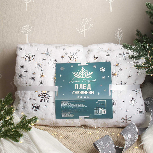 Плед белого цвета с серебристыми снежинками с текстурой меха — уютный и стильный текстильный аксессуар размером 200×150 см. Изделие украшено изящным зимним узором в виде блестящих серебряных снежинок разного размера, которые создают атмосферу праздника и зимней сказки. Плед отлично подходит для домашнего использования, согревая в холодное время года и добавляя яркий акцент в интерьер.