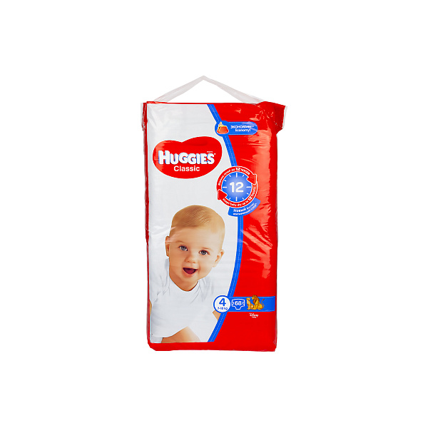 Подгузники HUGGIES Classic размер 4 созданы с применением специальной технологии защиты от случайных протеканий. Влага активно впитывается внутренней поверхностью подгузника. Специальный гель надежно блокирует жидкость на 12 часов. Упругий пояс и мягкие барьеры вокруг ножек не ограничивают движения малышей во время игр и сна. При производстве применяются дышащие материалы, способные обеспечить естественный воздухообмен. Таким образом кожа ребенка всегда остается сухой. А отсутствие синтетических ароматизаторов и лосьонов исключает вероятность аллергической реакции. Рекомендуются детям с весом тела - 7-18кг. В упаковке - 68шт.