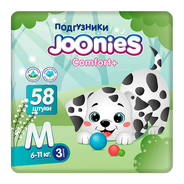 Подгузники Joonies Comfort+ — отличный выбор для заботы о малыше. Они подходят как для мальчиков, так и для девочек. Благодаря эластичным боковинам подгузники легко надеваются и снимаются, что делает их удобными как для активных, так и для спокойных малышей. Специальная форма обеспечивает плотное прилегание, предотвращая протекания и сохраняя кожу ребенка сухой.