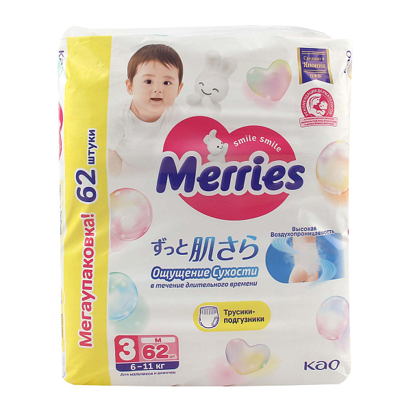 Подгузники-трусики Merries в размере M — это комфорт и защита для нежной кожи малыша. Разработанные с применением новейших технологий, они обеспечивают сухость на длительное время, благодаря особенностям конструкции и материалам.