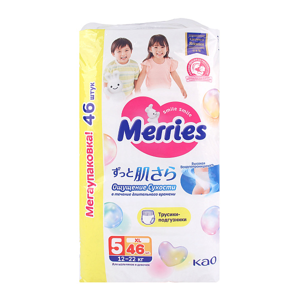 Подгузники-трусики Merries размера XL предназначены для детей весом от 12 до 22 кг. В упаковке 46 штук, что удобно для длительного использования. Эти подгузники обеспечивают сухость благодаря воздухопроницаемому слою, который эффективно выводит испарения наружу. Воздушные каналы в ободках на поясе способствуют циркуляции воздуха, уменьшая риск раздражения кожи ребенка.
