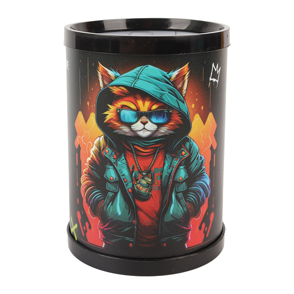 Подставка для канцелярии «Hey Bro» станет стильным и функциональным аксессуаром для любого рабочего стола. Эта подставка отличается ярким и оригинальным дизайном с изображением кота в модной одежде. Черный фон и контрастные цвета добавляют изделию выразительности и привлекательности.