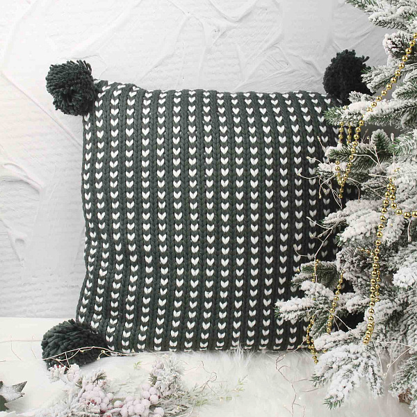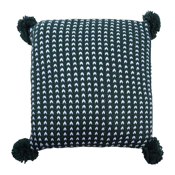 Подушка декоративная Вязанка с помпонами зеленая 45x45см