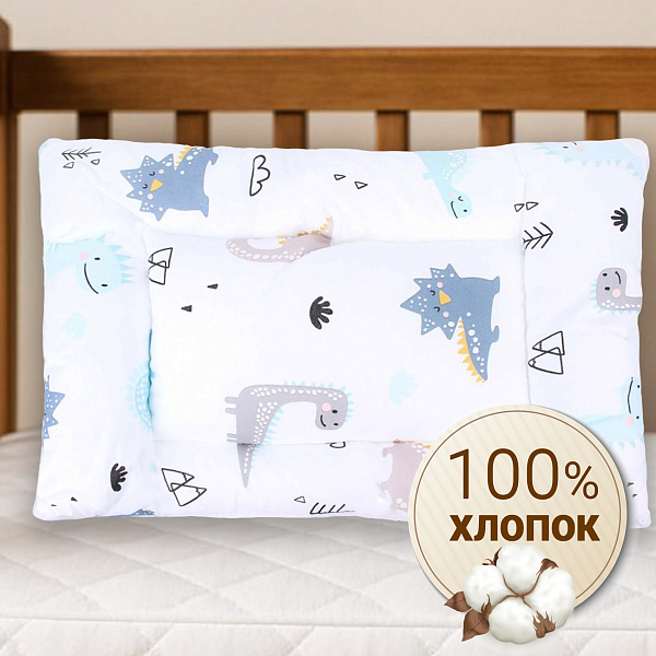 Яркий дизайн с веселыми динозаврами подарит радость ребенку и станет забавным акцентом в детской комнате. Подушка идеально подходит для сна в кроватке, ее также можно использовать в коляске или брать в путешествия.