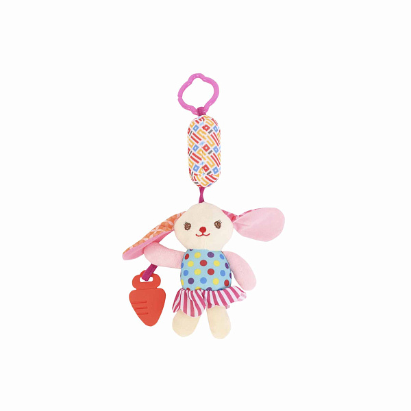 Оригинальная игрушка в виде симпатичного зайчика адресована малышам до 3 лет. Она привлекает внимание контрастным сочетанием цветов, дополнена прорезывателем для молочных зубов. Игрушка развлечет малыша, заставит концентрировать внимание. Взаимодействие с ней положительно повлияет на зрение, память, станет стимулом для координации движений. Изделие успокоит и подарит положительные эмоции.