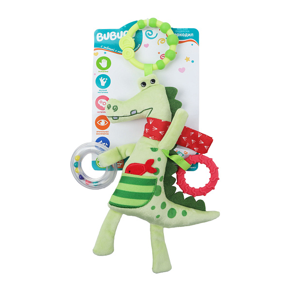Мягкая подвеска с развивающими элементами «Крокодил» — развивающая игрушка для малышей от рождения, выполненная из высококачественных тканей с мягким наполнителем. Игрушка изготовлена из ярких разнофактурных материалов, что привлекает внимание ребёнка и способствует развитию осязания. Дополнительные развивающие элементы, такие как кольца и прорезыватель в виде домика, помогают стимулировать мелкую моторику и положительно влияют на сенсорное восприятие малыша.