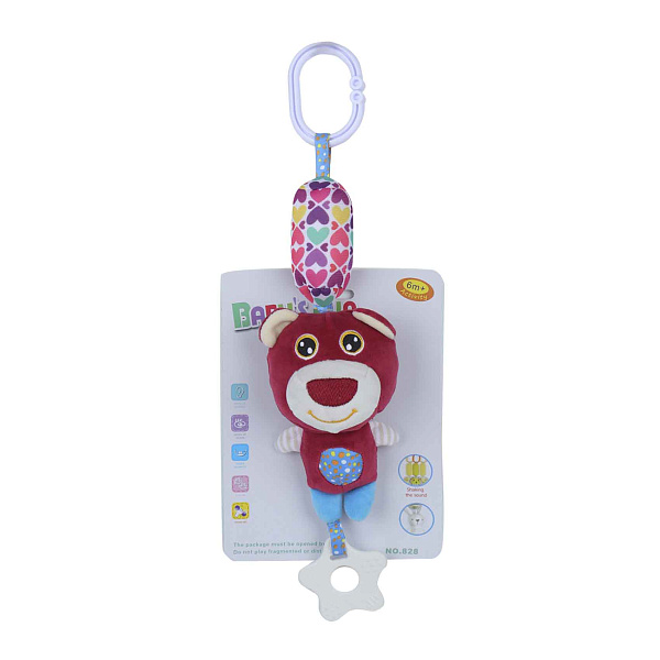 К игрушке прикреплен прочный пластиковый карабин, позволяющий легко закрепить ее на кроватке, коляске или игровом центре. Внизу подвески находится мягкий прорезыватель в форме звезды — он помогает малышу снимать дискомфорт во время прорезывания зубов. При встряхивании игрушка издает легкий звук, стимулируя слуховое восприятие.