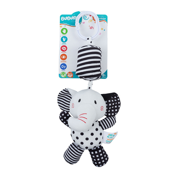 Подвеска мягкая Слоник развивающая черно-белая с 0мес