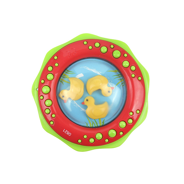 Играть с погремушкой не только полезно, но и очень увлекательно! Яркие уточки и божьи коровки внутри прозрачного пластмассового корпуса весело передвигаются и забавно гремят, если хорошенько потрясти игрушкой. А выпуклости по периметру погремушки будут способствовать развитию тактильных ощущений у малыша.