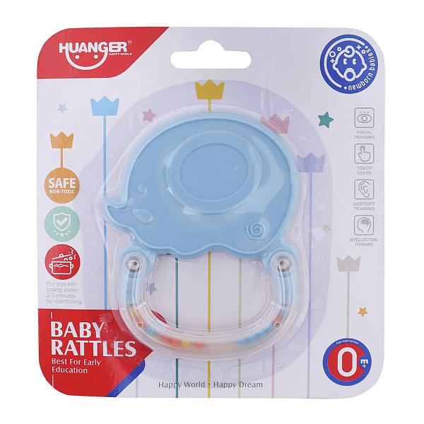 Погремушка Huanger «Слоник» — это безопасная и яркая игрушка для малышей с рождения. Игрушка выполнена в форме милого слонёнка с удобной ручкой-кольцом, которую легко удерживать даже маленьким ребёнком. Внутри прозрачного кольца находятся разноцветные шарики — при встряхивании они издают мягкий звук, стимулируя развитие слухового восприятия.