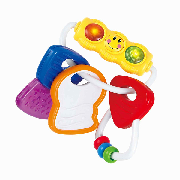 Погремушка изготовлена из безопасных материалов, легко моется и нравится малышу яркой расцветкой. На держателе-светофоре улыбается солнышко, и когда ребенок зажмет его в кулачке, по бокам замигают огоньки – это вызовет восторг у крохи. Три грызунка из силикона с разной формой и текстурной поверхностью помогут снять зуд с десен и прорезаться первым зубкам! А перебирать колечки – отличная гимнастика для пальцев и дальнейшего развития моторики. Товар рекомендован детям с первых дней жизни.