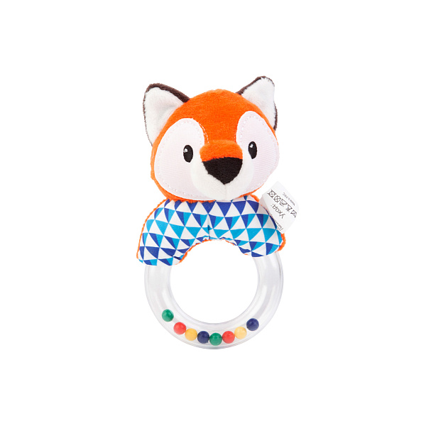 Красочная детская погремушка сочетает в себе пластиковое кольцо с цветными шариками внутри и мягкую голову лисенка. Лисенок при этом пошит из лоскутков разной ткани, которая развивает тактильную чувствительность малыша. Ребенку понравится наблюдать, как цветные шарики перекатываются внутри прозрачного кольца.