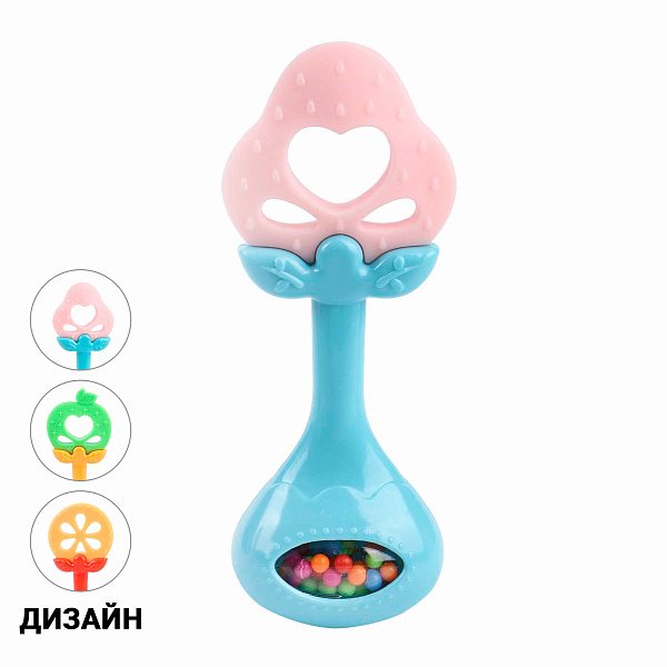 Погремушка-прорезыватель выполнена в виде ярких фруктов. В ассортименте представлены разнообразные формы: яблоко, апельсин, клубника и т.д.