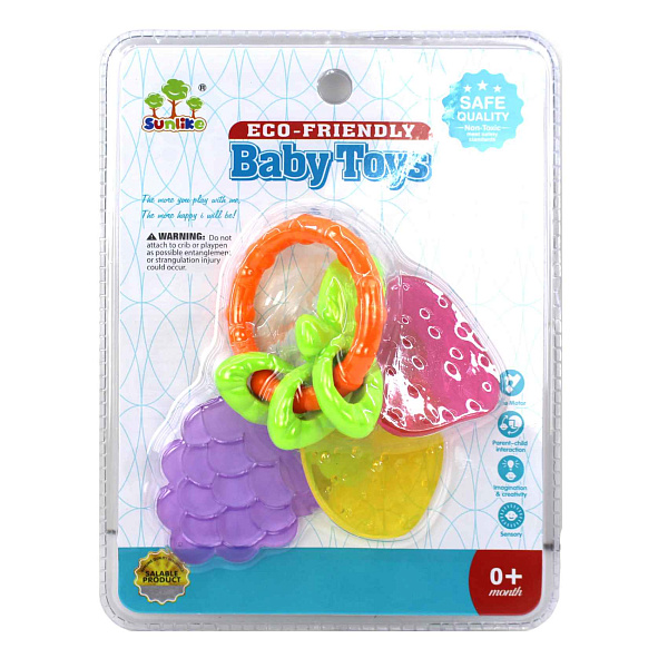 Погремушка-прорезыватель «Фрукты» сделана специально для малышей. Погремушка массирует десны малыша, уменьшая дискомфорт при прорезывании зубов. С ее помощью ребенок учиться познавать окружающий мир и развивает навыки мелкой моторики, внимания, цветового и слухового восприятия. Погремушка выполнена под размер детских ручек, имеет компактные размеры и удобную ручку, чтобы малыш мог легко захватывать игрушку. Также прорезыватель оснащен разъемным кольцом, которые можно крепить на к кроватке или к коляске.