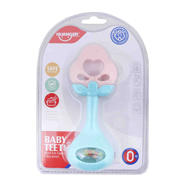 Изготовлена погремушка из безопасных материалов, которые гипоаллергенны и не вредят нежным деснам ребенка. Эргономичная форма и мягкая силиконовая часть отлично подходят для жевания, массирования десен и снижают болезненные ощущения при появлении зубов.