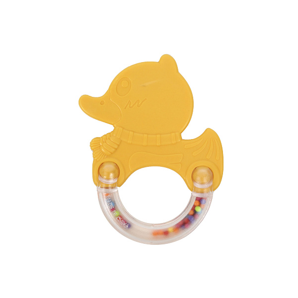 Порадуйте непоседливого малыша яркой фигурной погремушкой-прорезывателем. Верхняя часть игрушки выполнена из пищевого силикона и по форме напоминает желтого утенка. Мягкий силикон успокоит десна в период прорезывания зубов. Нижняя часть дополнена полукольцом, внутри которого перекатываются разноцветные шарики – во время тряски они создают приятное шуршание, которое заинтересует младенца и успокоит его. Яркая фигурная погремушка развивает моторику рук, сенсорику, слух и зрение. Рекомендовано для детей с первых дней жизни.