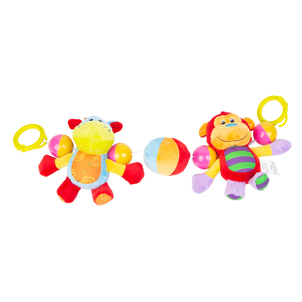 Игрушки размещены на резинке, поэтому ребенок может тянуть зверят на себя, и это будет безопасно. Малыш, играя и разминая игрушки, развивает моторику пальчиков. Игрушка изготовлена из экологичных материалов и предназначена для детей с первых дней жизни.