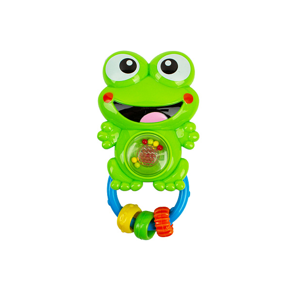 Яркая и звонкая игрушка имеет прозрачную вставку с разноцветным шариками. Она ориентирована на мальчиков и девочек с трехмесячного возраста. Широкое колечко в нижней части специально предназначено для маленьких пальчиков. На нем закреплены подвижные элементы, манипуляции с которыми полезны для активации моторных функций. Занятного лягушонка можно использовать для домашних игр, а также взять с собой на прогулку. Прочный пластик в составе не впитывает загрязнения и влагу, устойчив к механическому воздействию. В его составе нет веществ, способных навредить детскому здоровью.