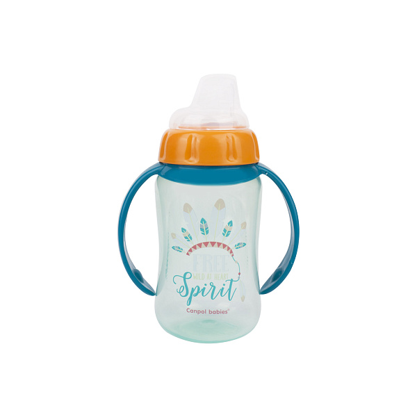 Приспособление в виде детского поильника позволит малышу попить самостоятельно. Упругий носик из эластичного силикона не способен травмировать ротовую полость ребенка. Изделие имеет ручки по бокам округлой формы, которые несложно снять при необходимости. Специальный колпачок надежно фиксируется в верхней части емкости, защищая поильник от пыли и грязи.