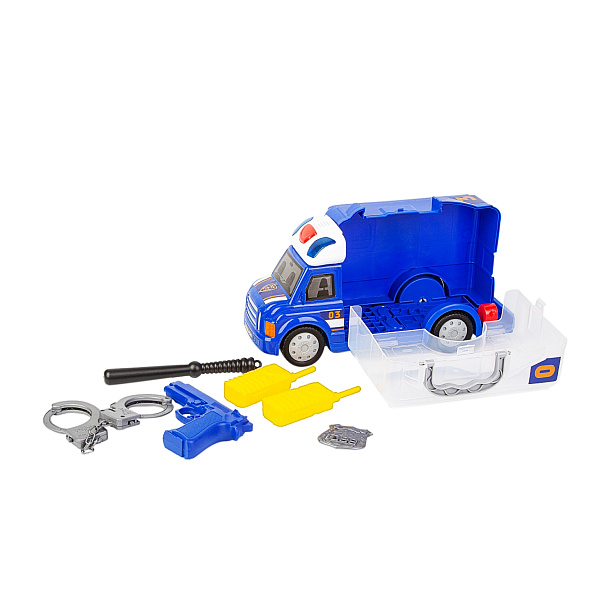 Порадовать и удивить мальчика старше 3 лет несложно при помощи увлекательного полицейского фургона. Внутри игрушки находится необходимое для сотрудника правоохранительных органов оснащение: пара раций, фонарик, бляха, наручники и пистолет.