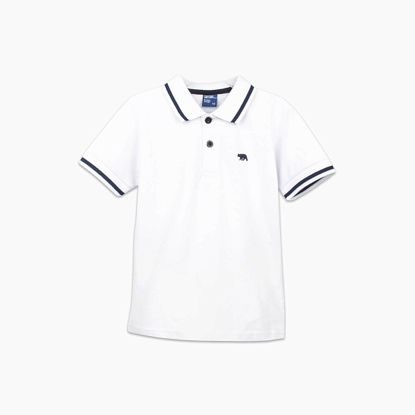 Эффектная белая футболка для мальчиков в белом цвете со сдержанным и стильным декором — must have детского летнего гардероба. Модель поло с застежкой на две пуговицы позволяет регулировать высоту горловины. Основной белый цвет отлично дополняют тонкие синие полоски с обрамлением рукавов и воротника. Небольшой вышитый медведь добавит строгости и брутальности образу юного модника. Футболка-поло хорошо гармонирует с шортами, джинсами или летними брюками. В составе полотна 95% хлопка и 5% эластана, что обеспечивает гигроскопичность, устойчивость к износу и отличный внешний вид. Футболка не требует сложного ухода, допустима ручная или автоматическая стирка в соответствии с рекомендациями производителя.