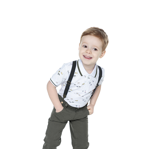 Оригинальная модель детского поло с воротничком и планкой гармонично сочетается с повседневными брюками, джинсами или шортами. Модель имеет универсальное назначение, поэтому пользуется стабильно высоким спросом. Внимание привлекает детальное исполнение и эффектный принт, который будет одобрен каждым маленьким модником. Для пошива использовано полотно на хлопковой основе. А небольшой процент эластана (5%) обеспечивает устойчивость ткани к износу и деформации. Такая футболка не мнется, не линяет, при этом чудесно переносит частые стирки. Мягкий и приятный на ощупь трикотаж обеспечивает естественную вентиляцию, чудесно впитывает влагу и препятствует потоотделению. Рекомендовано для детей ясельного возраста.