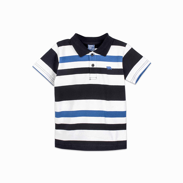 Эта полосатая футболка поло органично завершит образ вашего юного модника. В составе ткани использован натуральный хлопок с добавлением эластана. Благодаря этому футболка не только бережно защищает кожу от перегрева, но и садится на любую фигуру и не сковывает движений в процессе носки. Для комфорта на подворотничке имеются несколько кнопок, с помощью которых можно легко расстегнуть поло. Образ завершает черно-сине-белая полоска благодаря чему футболка будет чудесно сочетаться с вещами спортивного или повседневного стиля. Рекомендовано для детей дошкольного и школьного возраста.