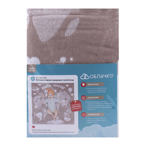 Полотенце Облачко Hello World махровое бежевое 100х100см