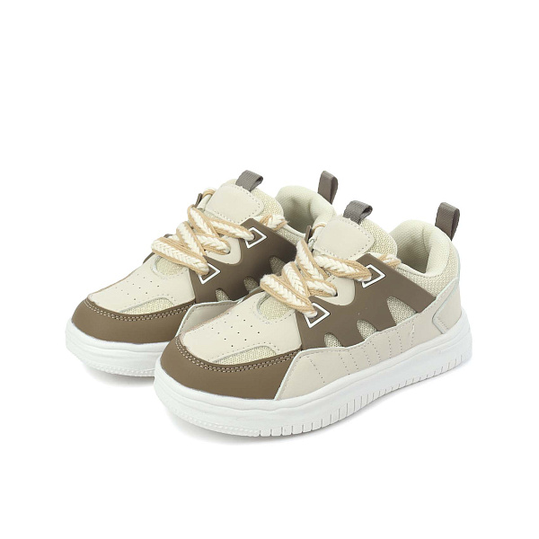 Легкие и удобные полуботинки для девочек школьного возраста. Модель создана в спортивном стиле и внешне напоминает кеды. Изделие выполнено в бежевых оттенках. Плотная пятка помогает поддерживать правильное положение стопы. На ноге обувь фиксируется при помощи шнуровки. Такие светлые полуботинки подойдут для прогулок в теплую и сухую погоду.