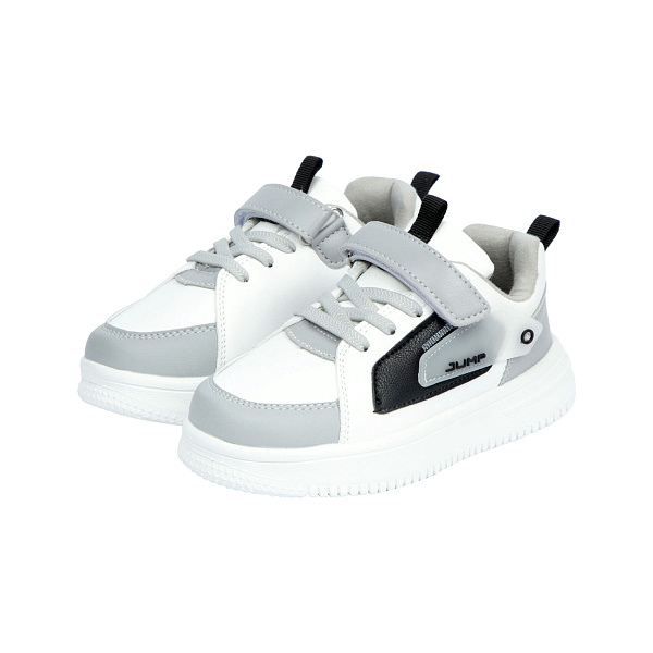 Демисезонные полуботинки предназначены для мальчиков дошкольного возраста. Модель в спортивном стиле оформлена с использованием белого и серого цвета. Внимание привлекают контрастные черные вставки и полупрозрачная накладка с внешней стороны.
