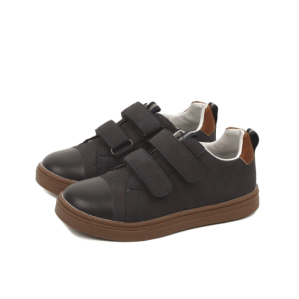 Полуботинки Pasito на двойной липучке с коричневыми вставками темно-синие