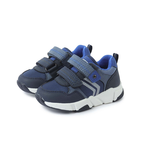 Полуботинки для мальчиков спортивного типа на каждый день. Изделие закрытого типа в синем цвете. Застегивается на липучки, которые помогают ускорить сборы малышей. Модель создана для детей ясельного возраста. У нее высокая пятка, которая фиксирует правильное положение стопы. Верх изготовлен текстиля со вставками из искусственной кожи. Внутренняя часть – из дышащего хлопчатобумажного материала.