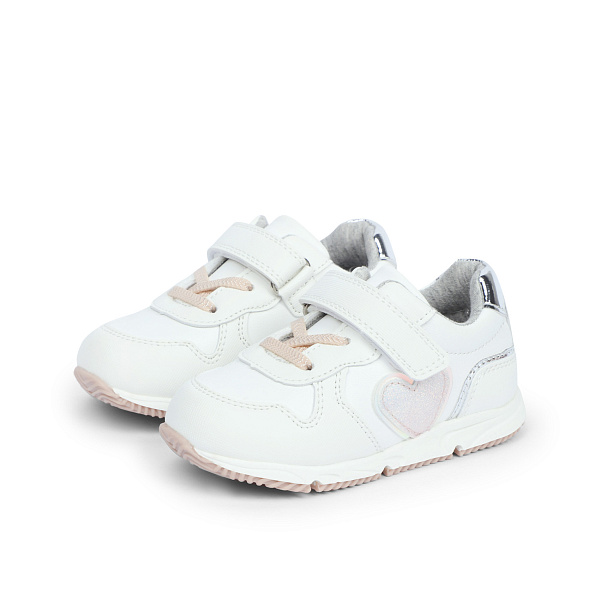 Модный образ девочек ясельного возраста прекрасно дополнят легкие полуботинки белого цвета с изящным сердечком.