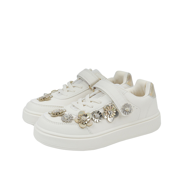 Полуботинки для девочек — это элегантная и практичная обувь в бежевом цвете с декоративными цветочными аппликациями на носке, выполненная в стиле кроссовок. Верх модели изготовлен из искусственной кожи, что обеспечивает прочность и легкость ухода, а мягкая подкладка и стелька из смеси хлопка (80%) и полиэстера (20%) обеспечивают комфорт и воздухопроницаемость даже при длительном ношении. Широкие липучки и дополнительные шнурки гарантируют надёжную фиксацию, а рифлёная подошва из ТЭП обеспечивает отличное сцепление и амортизацию. Обувь сочетает в себе стиль и функциональность: цветочные элементы делают её нарядной, а удобный силуэт и мягкие материалы — идеальной для повседневного использования, прогулок и занятий в детском саду. Идеально подходит для активных детей, ценящих и красоту, и комфорт.