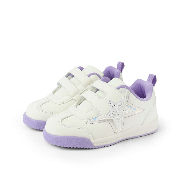 Полуботинки Pasito с декором звезда с фиолетовыми элементами двойная липучка белые