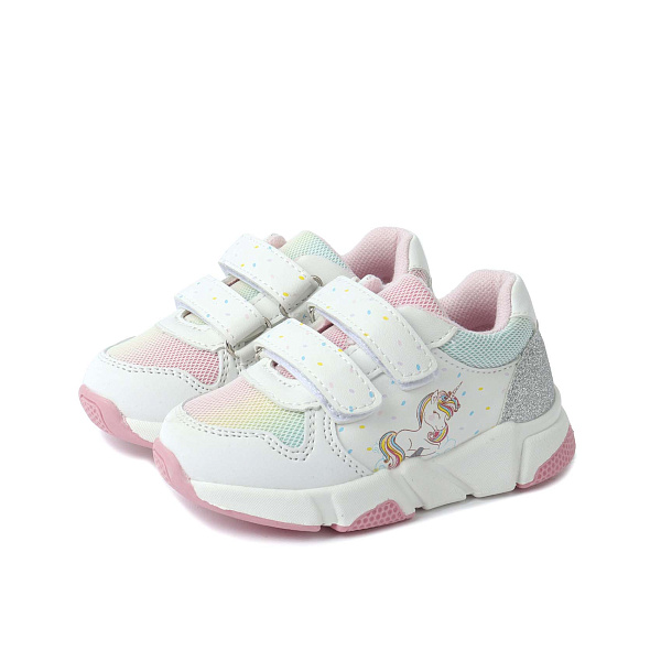 Полуботинки в спортивном стиле привлекают внимание нежной палитрой красок. Они предназначены для маленькой девочки, созданы с учетом ее базовых потребностей. В качестве застежки производитель использует пару широких ремешков с липучками. Они позволяют быстро переобуть ребенка, надежно удерживают обувь на ноге.