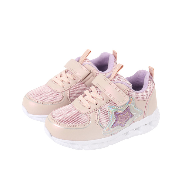 Полуботинки Pasito с голографическим элементом подошва с огоньками розовые