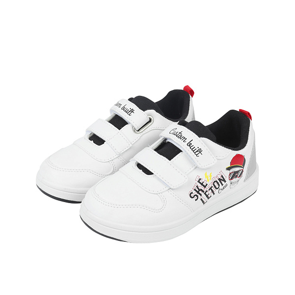 Полуботинки Pasito Skeleton crew на липучках с рисунком череп с серой вставкой на пятке белые