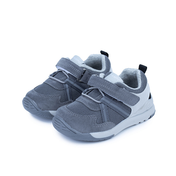 Легкие кроссовки в спортивном стиле ориентированы на мальчиков младшего возраста, поэтому оформлены в практичной серой гамме. Модель имеет двойную застежку, а простая в применении липучка продублирована эластичным шнурком, позволяющим отрегулировать полноту и прочно зафиксировать обувь на стопе. Комфортную посадку на ноге ребенка обеспечит язычок и мягкий задник.