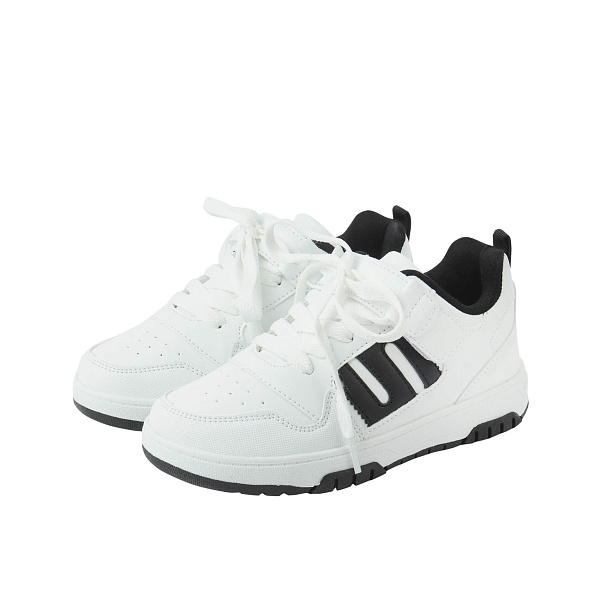 Классические полуботинки для мальчиков школьного возраста. Модель белая с черными вставками. Это универсальный оттенок, который будет хорошо сочетаться с разными стилями и цветами в одежде. Верхняя часть выполнена из искусственной кожи, а внутренняя – из натуральной хлопчатобумажной ткани. Благодаря такому сочетанию в ботинках ногам малыша будет удобно и комфортно на протяжении всего дня.