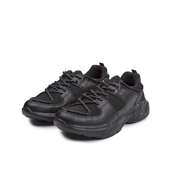 Стильные черные кроссовки спортивного типа для мальчиков школьного возраста установлены на высокий рельефный протектор из вулканизированного полимера. Такая подошва улучшает скоростные и динамические показатели движения, а также формирует правильную форму стопы. Кроссовки изготовлены из кожи с перфорированными текстильными вставками, обеспечивающими естественную вентиляцию ног во время носки. Внутренняя поверхность обуви изготовлена из текстильного материла, который стойко переносит стирку и чистку, а также быстро сохнет. Функциональная шнуровка заправлена специальным способом, который выглядит декоративно и аккуратно.